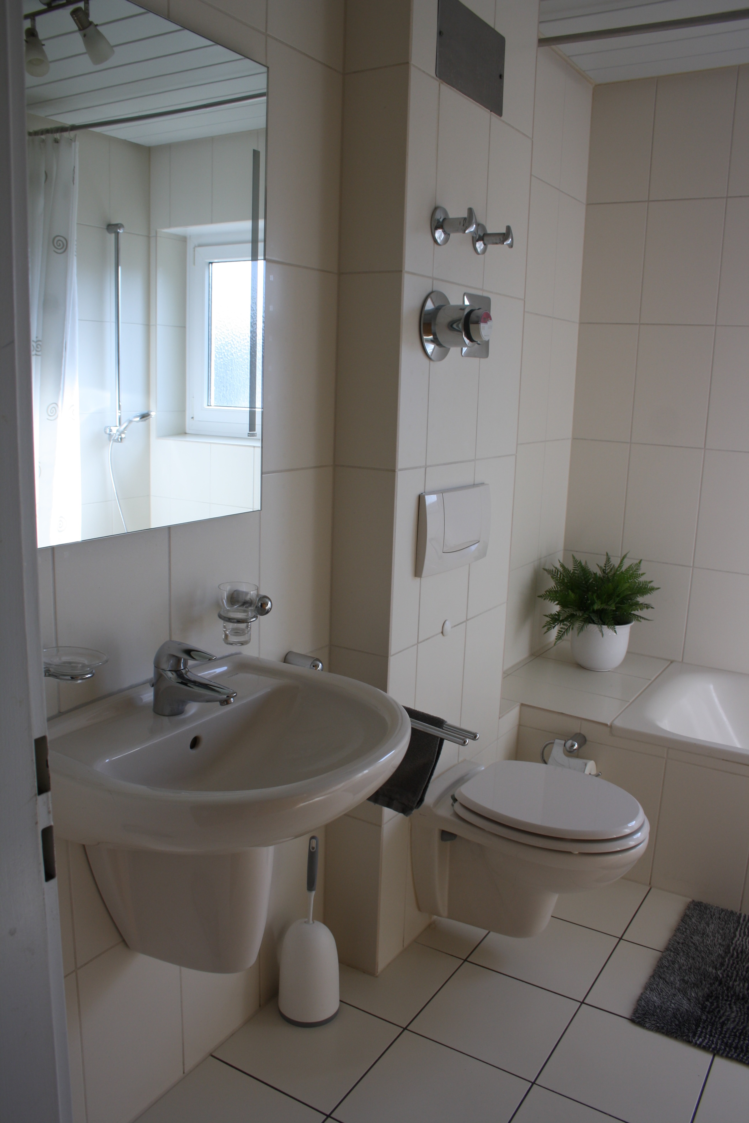 Helles Bad mit Wanne und Fenster. (Das Bad wurde komplett erneuert)